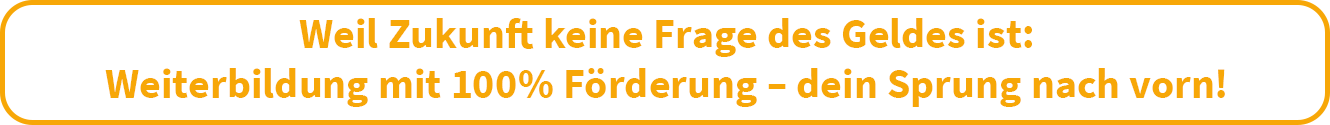 Egal ob einer dieser Gründe oder ein anderer dafür sorgt, dass du eine geförderte Weiterbildung machen möchtest, es ist eine gute Wahl. Denn mit Ehrgeiz, Wissbegierde und Fördermitteln von der Agentur für Arbeit hast du die optimalen Voraussetzungen, um erfolgreich und unabhängig im Beruf zu sein.
